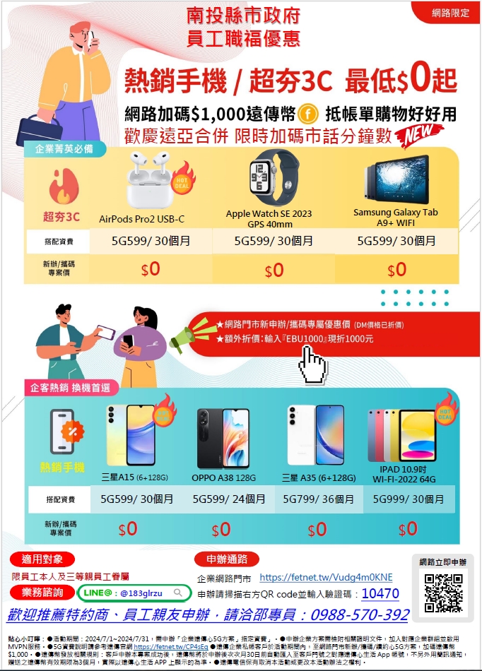 【轉知】南投縣市政府員工員眷福利資訊-遠傳電信【7月優惠方案】