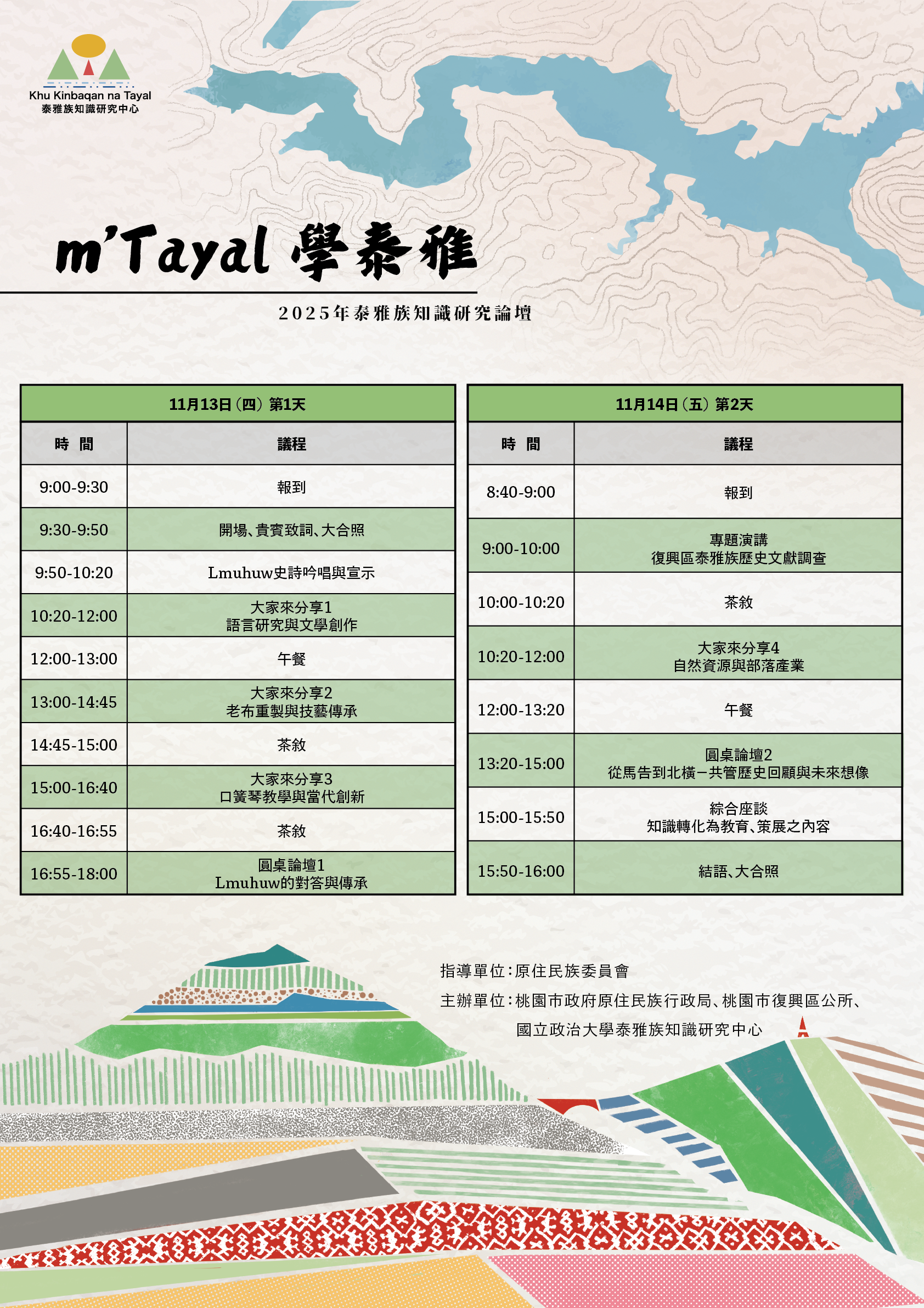 | (一) | 活動時間:114年11月13日(星期四)至14日(星期五)上午9時整至下午4時整。 |