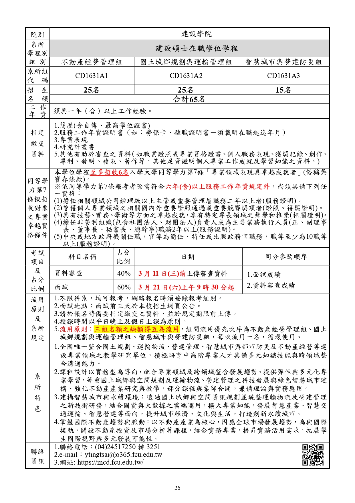 | 四、 | 本學程詳細介紹,請參閱本學程官網,網址:https://mcd.fcu.edu.tw/。 |
